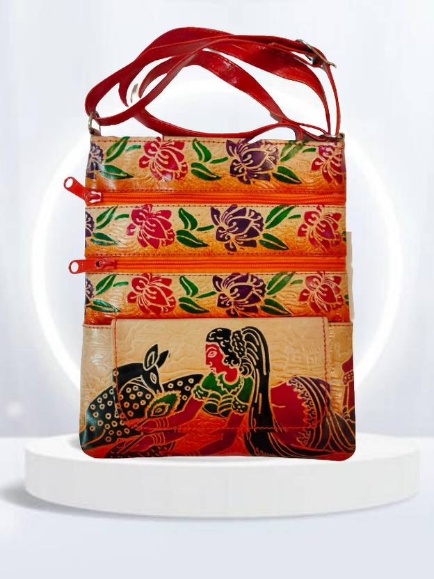 Shantiniketan Pure Leather Womens Crossbody Shoulder Bag Shakuntala Playing