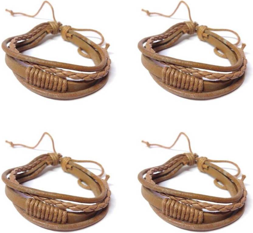 LEATHER DESIGNER BAND (PACK OF 4) Men & Women Wrist Band (Brown, Pack of 4)
