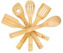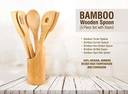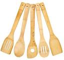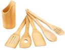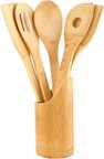CLASSY TOUCH Bamboo Cooking, Serving Wooden Spoon with Stand (Each 30 cm Long) -5 Piece Set Kitchen Tool Set (Wood, Brown, Spatula)