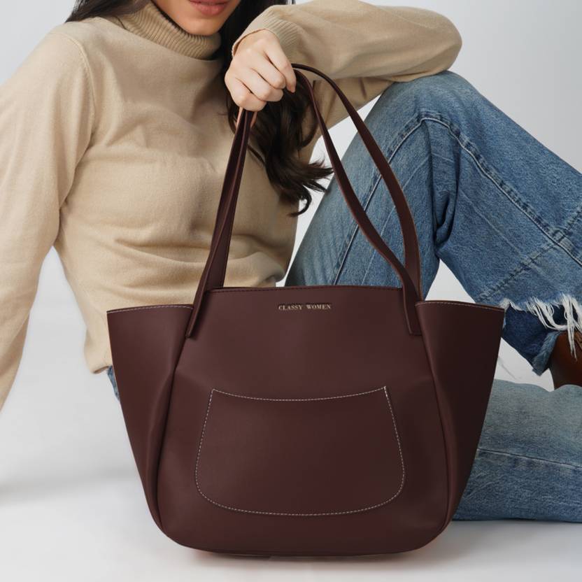With a modern look that never goes out of style Best gift for you and your friend. This bag can match many kinds of clothing. Suitable take for travel and outing. Keep all of your items organized in this bag, making your life easier and more convenient. Happy Day going to an event or traveling! Materials: PU Leather Colour Available: Black, Brown. Size: 27 (L) cm X 12 (W)cm X 29 (H)cm (approx.) This bag is spacious and perfect for keeping your everyday essentials. Suitable for all occasions. Pair this bag with casuals/formals if you like to look smart. It is made by high-quality PU material. Do not expose to overheating and dust. Clean it with a dip dry cloth when needed. Comfortable and Resilient – Strong enough to carry heavy things, capacious enough to carry big items, and has round handles that give you the ease of carrying them. It is soft on your shoulder and is ideal for long and hectic commutes. We have taken special care to make it cruelty-free. The premium faux leather women's tote bag doesn’t involve the use of animal hides and parts. Elegant look – It works 9 to 5 and beyond. It’s designed to be versatile enough to be anywhere from the office to parties. This classy handbag comes with a magnetic closure that gives it a touch of sophistication. You look like a boss lady when you commute around the town on your business.