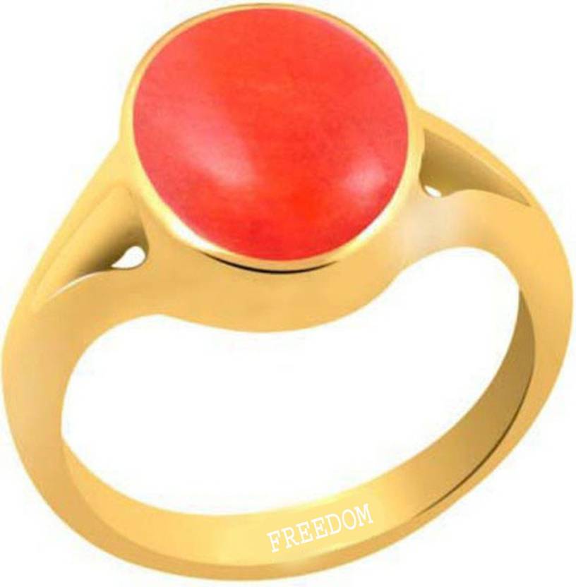 Certified Coral (Moonga) Gemstone 3.25 Ratti or 2.96 Carat for Male & Female Panchdhatu 22K Gold Plated