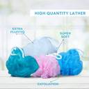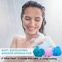 cleansia Loofah sponge offers a gentle yet effective exfoliation for smooth, glowing skin. Perfect for use in the shower or bath, the loofah sponge helps remove dead skin cells, stimulate circulation, and promote healthy skin renewal. Softens when wet an, Rich Lather with Less Soap – Designed to create a thick, foamy lather using minimal body wash or soap for a luxurious cleanse., Durable & Long-Lasting – High-quality construction ensures each lufa bath sponge holds its shape and stays effective over time., Easy to Hang & Dry – Comes with a convenient hanging loop for quick drying and hygienic storage between uses., Value Pack of 4 – Includes a loofah combo pack of 2, perfect for home use, travel, or sharing with a partner.