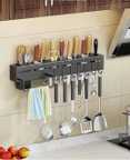 This versatile rack features a dedicated knife holder along with multiple hooks, which make it suitable for storing a wide range of kitchen tools. Whether it’s knives, spatulas, ladles, or other cutlery, this rack helps organise your kitchen essentials efficiently. The multi-purpose design ensures that you have everything you need right at your fingertips.