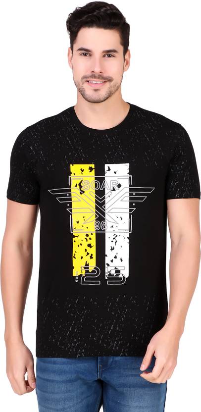 Men Typography Round Neck Pure Cotton Black T-Shirt