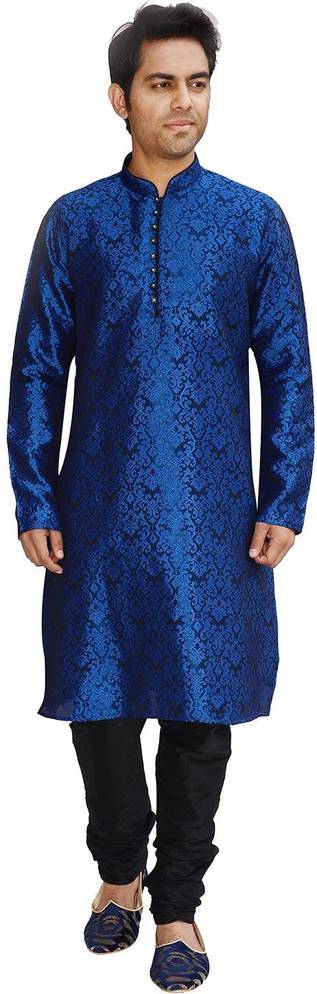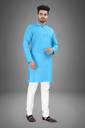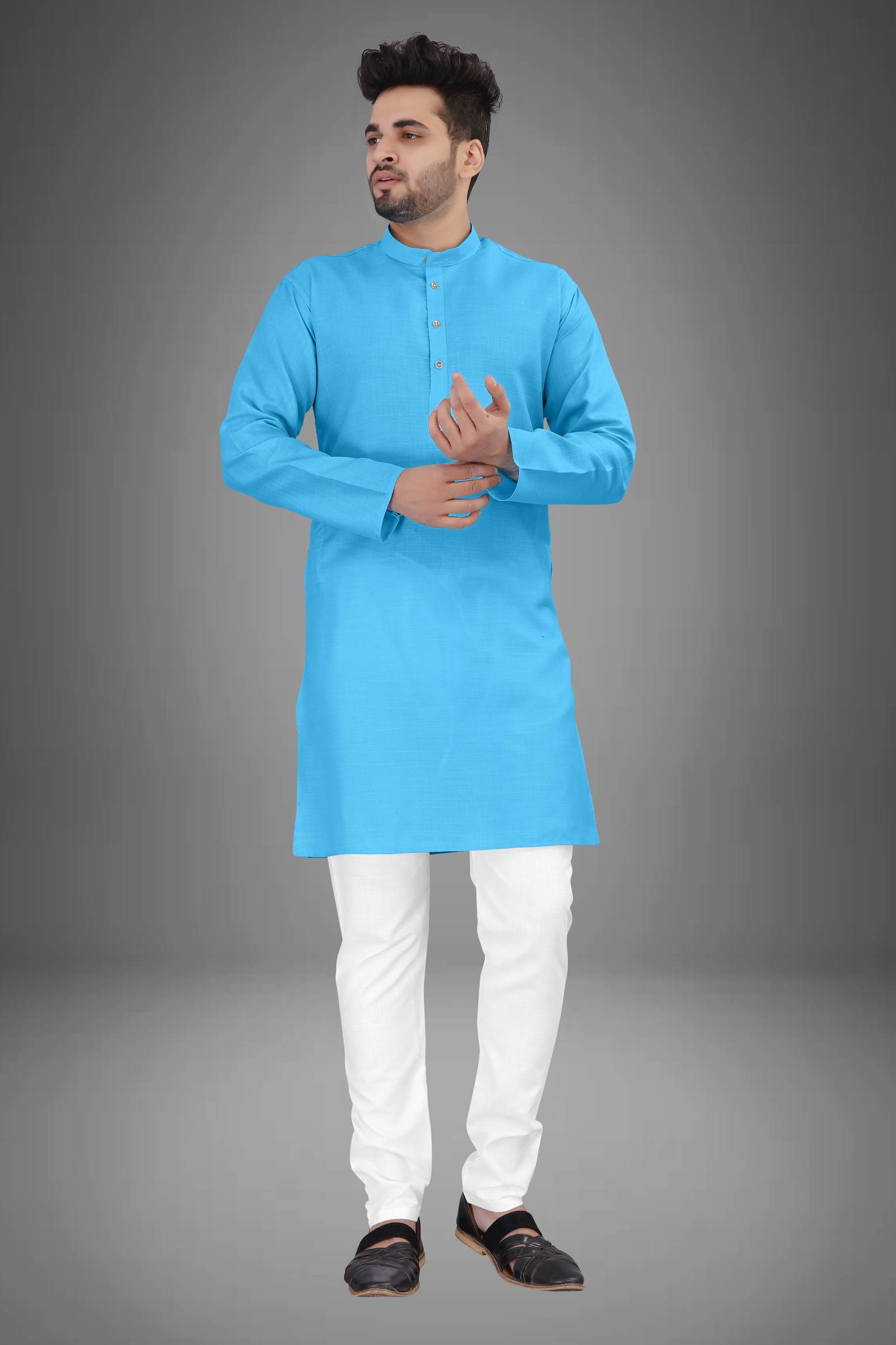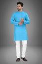 Men Solid Cotton Blend Straight Kurta (Light Blue)