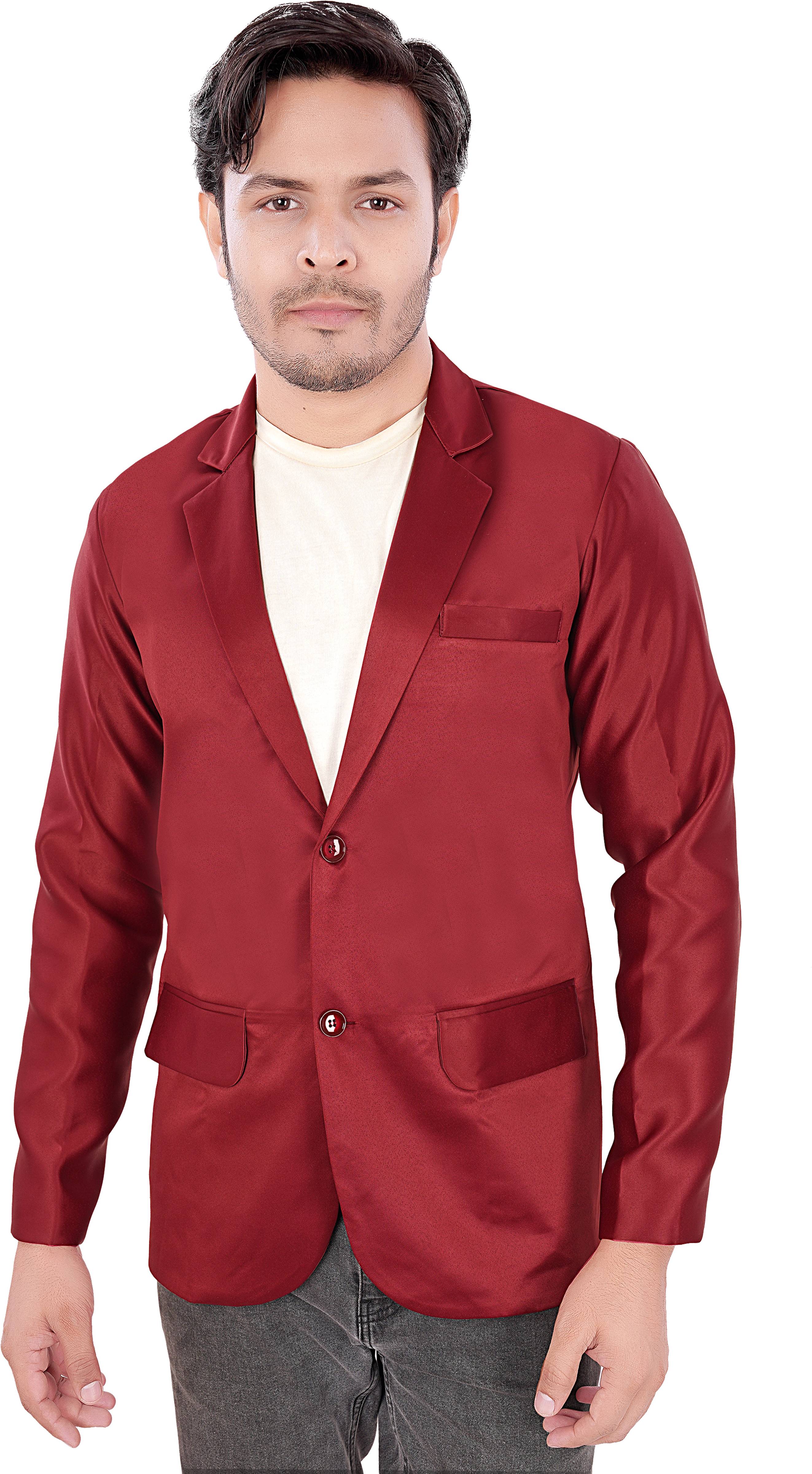 Men Solid Single Breasted Casual Blazer (Maroon)