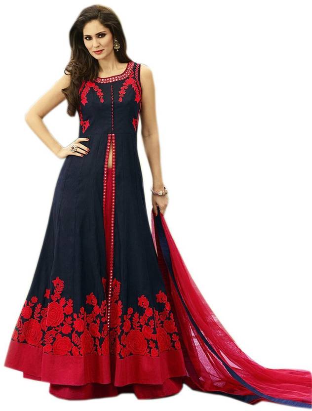 Semi Stitched Art Silk Salwar Suit Material Embroidered