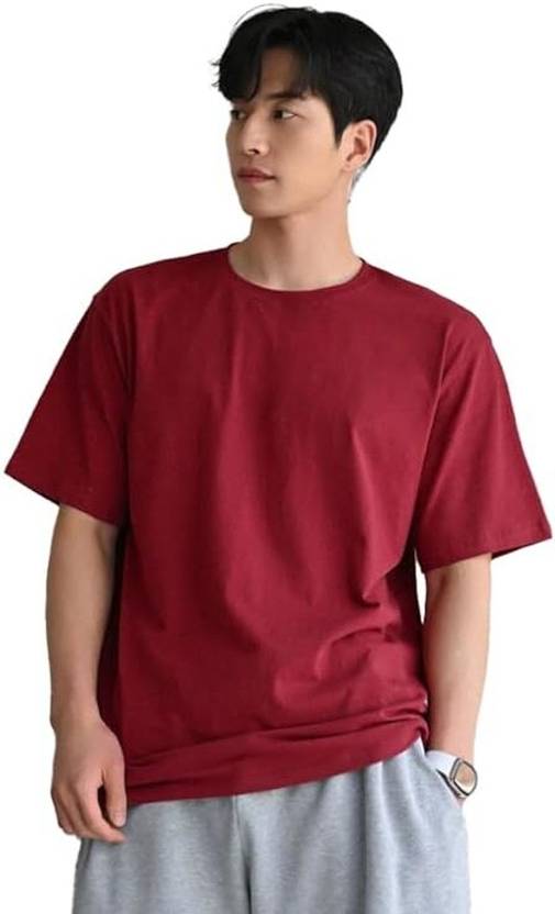 LIULA CORPORATION Solid Men Round Neck Maroon T-Shirt