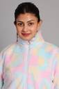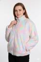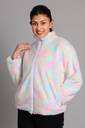 This cozy, hooded jacket is crafted from soft teddy fur fleece in a neutral shade. It features a full front zipper and a fitted elastic hem and cuffs for a comfortable, casual fit. Ideal for a relaxed, layered look.