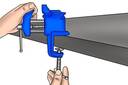 The product in display is table baby vise clamp made of cast iron and finished in yellow-black colour.