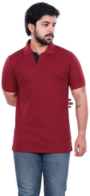 Clint Men Solid Polo Neck Polycotton Maroon T-Shirt
