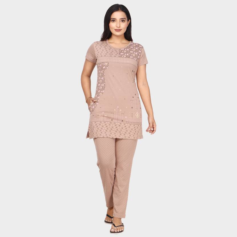 Printed NightSuit for Summer. Specially Designed for Women's/Girls. No Fade or Shrinkage Issues. Loose-fitted and perfect length hide your tummy, shaping your body line perfectly. Good for legging and tight jeans. Round neck, Super soft, breathable high stretchy and comfortable, the touch feeling is admirable.