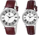 ClockRoom Luxury Roman Number White Dial Brown Leather Belt Analog Watch - For Couple 5001-WH Couple