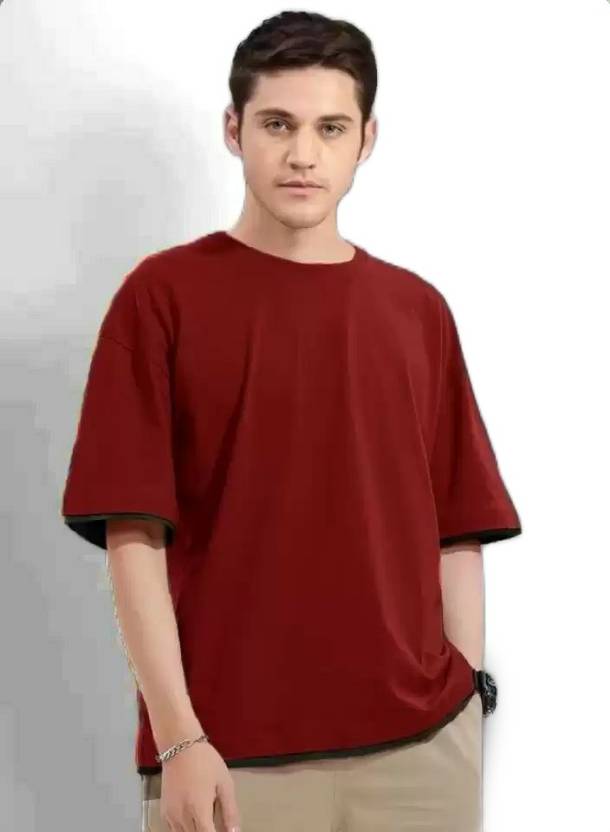 CLOFLIX Solid Men Round Neck Maroon T-Shirt