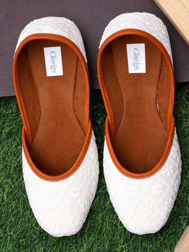 Clorigs Clorigs Chiken Work jutti For Women Jutis For Women (White , 9)