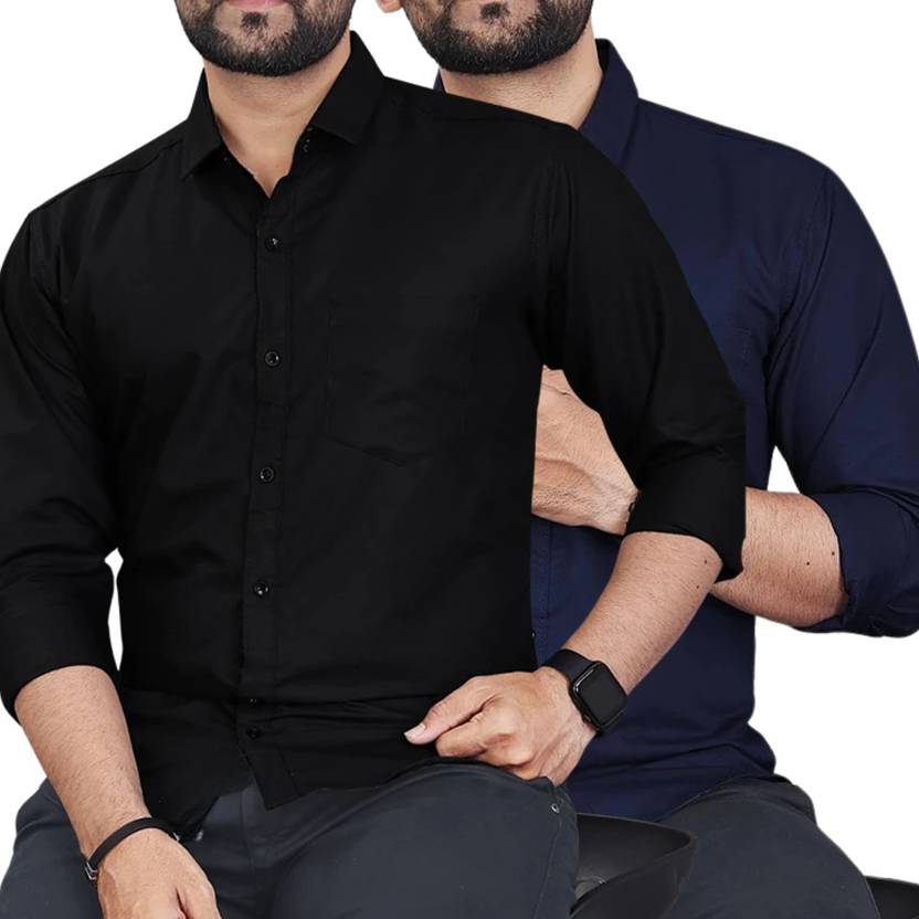 CLOSWIF Men Regular Fit Solid Spread Collar Casual Shirt (Pack of 2)