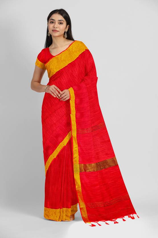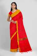 CLOTHARS Woven Handloom Cotton Silk Saree (Red)