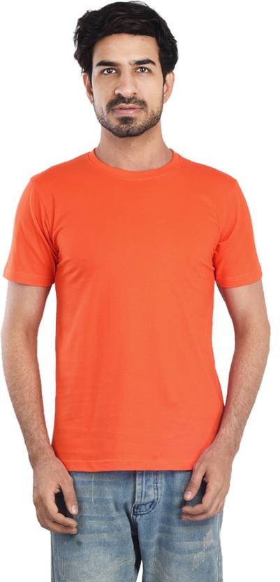 Clothe Funn Solid Men Round Neck Orange T-Shirt