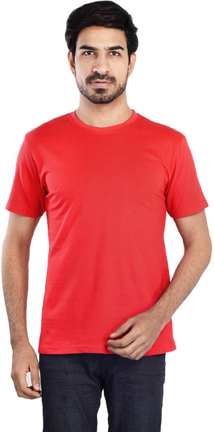 Clothe Funn Solid Men Round Neck Red T-Shirt