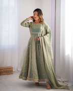 Type: Anarkali Kurta Set Occasion: Festive, Wedding, Party Ideal For: Women Pattern: Embroidered Surface Styling: Embroidery Top Shape: Anarkali Neck: Round / Scoop Neck Sleeve Length: Full Sleeve / 3/4 Sleeve (as per actual product)