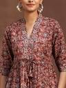 Fabric: Cotton, Sleeves: 3/4th sleeves provide a balanced look, offering both comfort and style., Neckline: V neck, Length:28 inches, Occasion: Suitable for casual wear, semi-formal events, or festive gatherings, where a blend of comfort and elegance is desired.