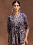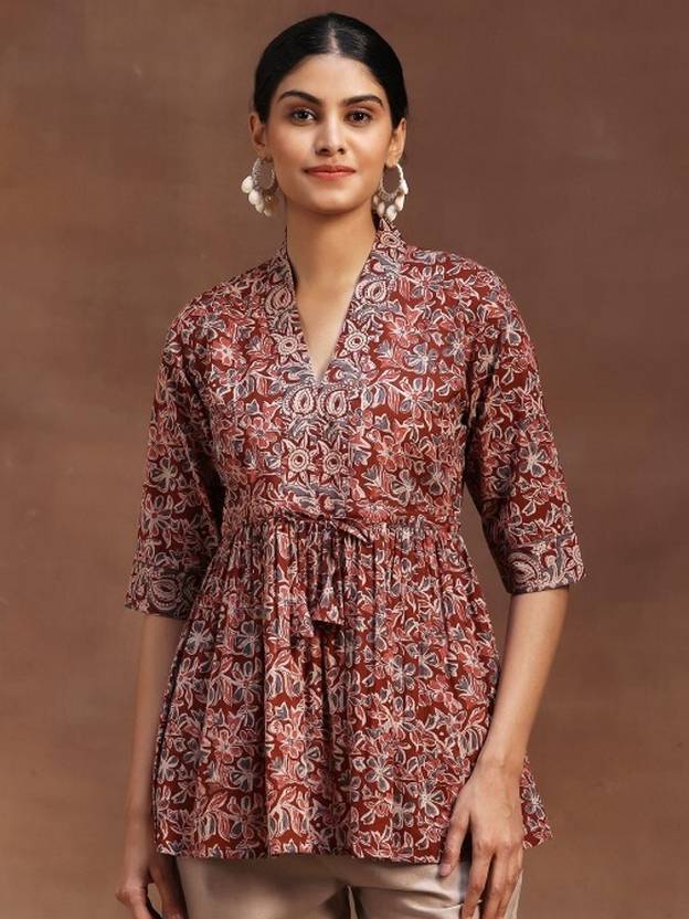 Fabric: Cotton, Design: Floral print, Hip: 28 inches, Sleeves: 3/4 sleeves, Length: Hip-length