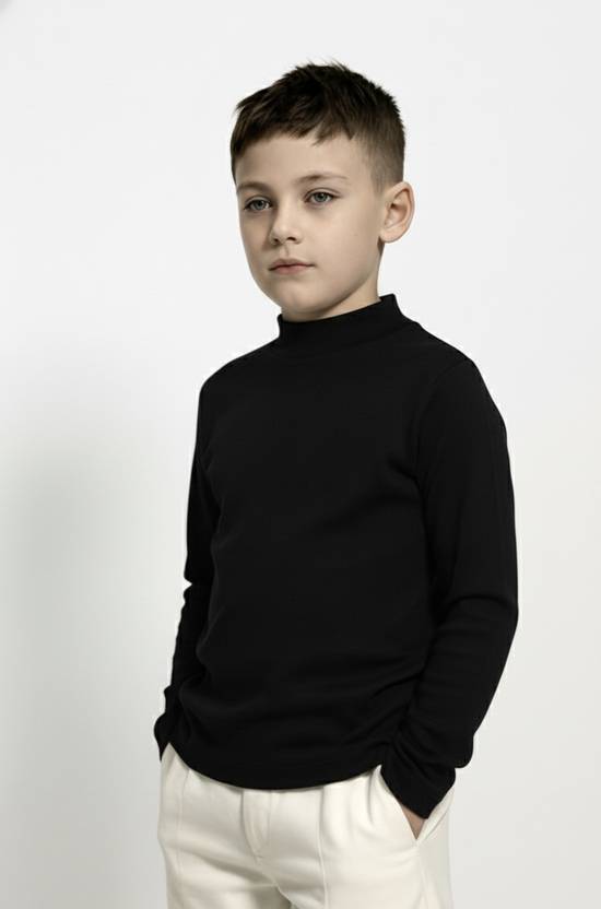 Clothify Boys Solid Cotton Blend Regular T Shirt (Black, Pack of 1)