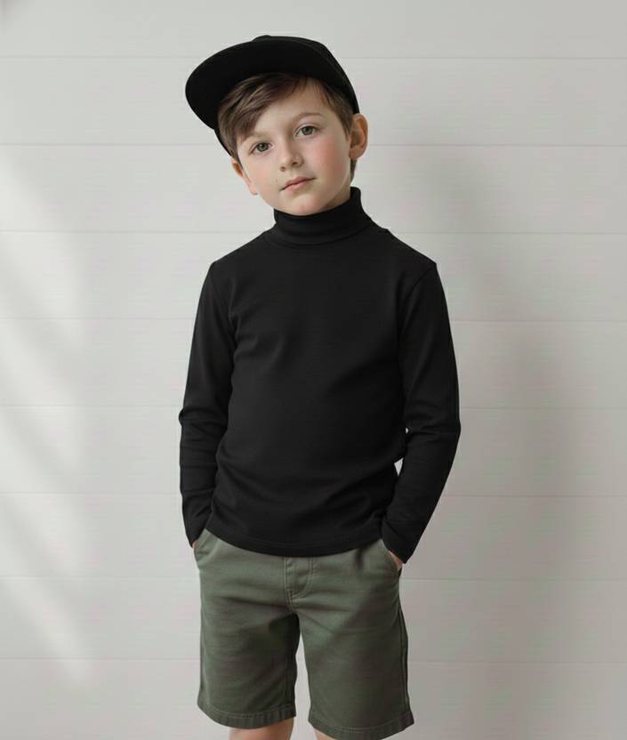 Clothify Boys Solid Cotton Blend Regular T Shirt (Black, Pack of 1)
