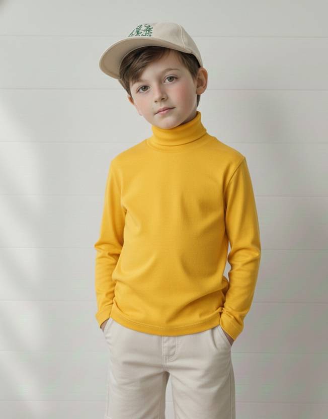 Clothify Boys Solid Cotton Blend Regular T Shirt (Yellow, Pack of 1)