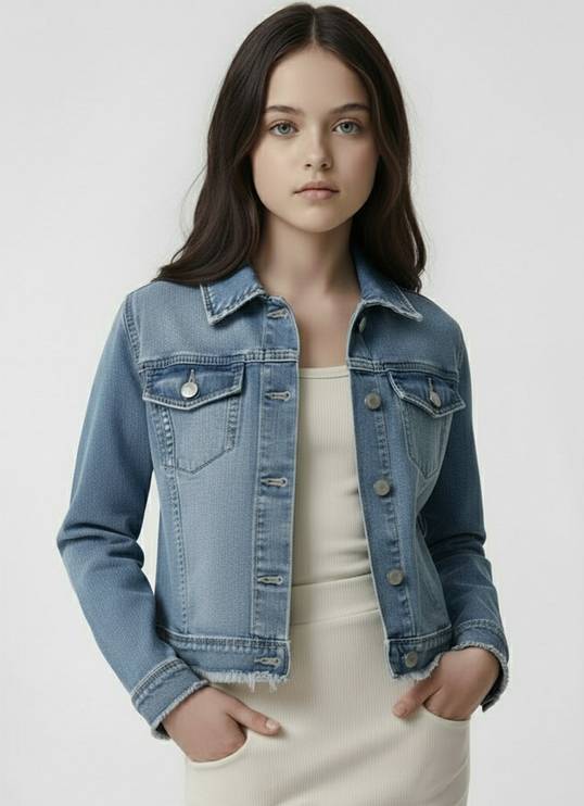 Clothify Full Sleeve Solid Girls Denim Jacket