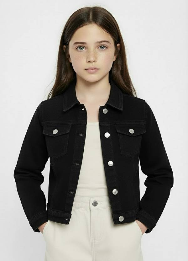 Girls Solid Denim Jacket