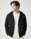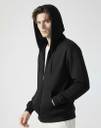 Men Solid Black Cotton Zip-Up Hoodie, Ribbed Hem & Cuffs, Kangaroo Pockets, Smooth Zipper, Adjustable hood
