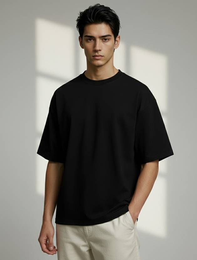 The 240 GSM fabric ensures zero transparency, a premium drape, and long-lasting performance, making it perfect for everyday fashion, layering, gym pump covers, and modern streetwear outfits. If you're looking for a high-quality, plain black oversized T-shirt that looks expensive and feels premium — this is the one.