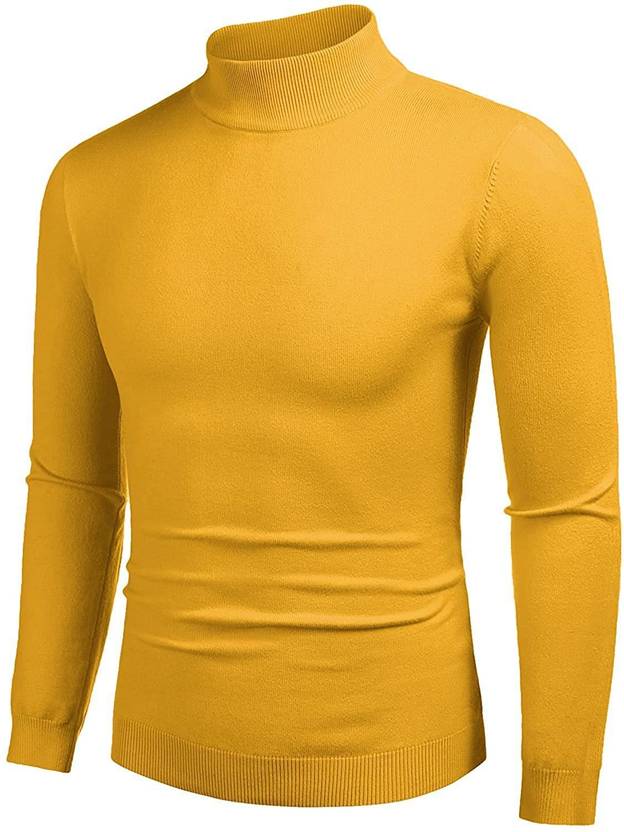 Clothify Men Solid High Neck Cotton Blend Yellow T-Shirt