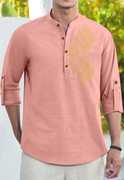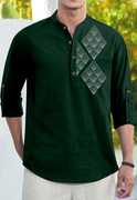 Refresh your ethnic wardrobe with this stylish and comfortable Men’s Cotton Blend Printed Kurta Shirt. Designed for today's modern man, this kurta offers a regular fit with a trendy Mandarin/Chinese collar, thigh-length cut, and roll-up full sleeves with cuff detailing. The front button placket adds a touch of classic charm to the modern look. Whether you're dressing up for a festive celebration or just looking for a smart casual ethnic shirt for daily wear, this kurta has you covered. Perfect for occasions like Holi, Diwali, Eid, Onam, Baisakhi, Raksha Bandhan, family gatherings, poojas, or even office ethnic day. Crafted from a soft and breathable cotton blend fabric, it's ideal for all seasons — especially summer wear. Pair it with jeans, trousers, or pajamas for a classy Indo-western look.