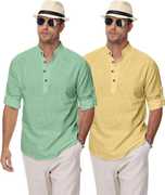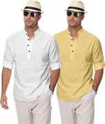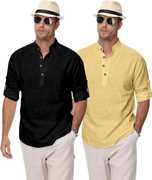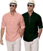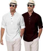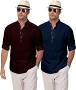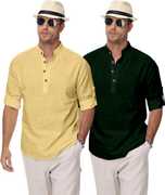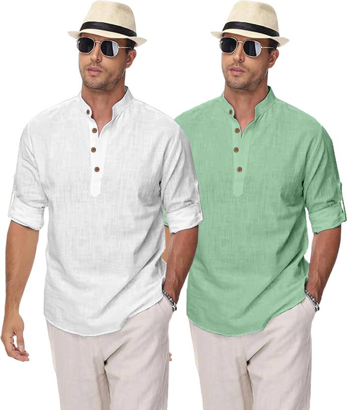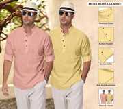 Upgrade your ethnic and casual wardrobe with Clothing Veda's Men's Kurta Shirt Combo Set, a perfect fusion of tradition and modern fashion. This combo includes 2 premium short kurtas for men, designed in solid colors with elegant styling that blends comfort and style effortlessly. Made from breathable cotton blend fabric, each kurta offers all-day comfort, making it ideal for both daily and festive wear. Available in versatile shades – White, Black, Pista Maroon, Green, Yellow, Peach, Sky Blue, and Navy Blue this combo kurta set is tailored for men who appreciate minimal yet classy ethnic fashion. These mens kurta shirts feature a Mandarin/Chinese collar, full sleeves with roll-up option, and a regular fit, giving a clean and contemporary appeal suitable for college, office, family functions, or even casual outings. Whether you're searching for a stylish kurta for men, a trendy kurta shirt, or a shirt kurta combo to enhance your ethnic wardrobe, this pack of 2 from Clothing Veda is your go-to option. Pair it with jeans, chinos, or traditional pajamas to create a perfect Indo-western or ethnic look. Suitable for men, boys, college students, and professionals, this kurta set fits every occasion with elegance and comfort. Experience the charm of modern ethnic wear with this men's kurta shirt combo and give your closet a refreshing update — only with Clothing Veda.