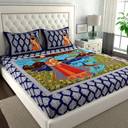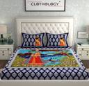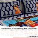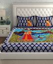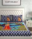 CLOTHOLOGY Cotton Double Flat 144 TC Jaipuri Prints Bedsheet (Pack of 1, Blue, Sky Blue, Red, Green)