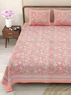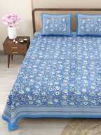 CLOTHOLOGY Cotton King Flat 240 TC Jaipuri Prints Bedsheet (Pack of 1, Navy Blue & White)