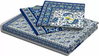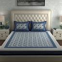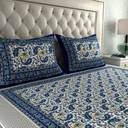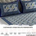 CLOTHOLOGY Cotton Double Flat 144 TC Jaipuri Prints Bedsheet (Pack of 1, Blue, Yellow, Sky Blue, Grey)