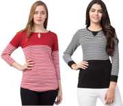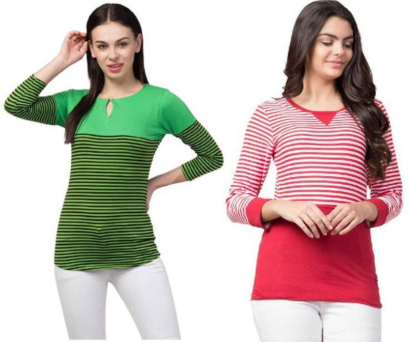 Clothy Striped Women Round Neck Multicolor T-Shirt