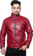 Men Solid Leather Jacket