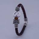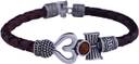 CloudConcept Handcrafted Spiritual One Sided Trishul Damru OM Rudraksha Beads Gold Plated Mahakal Shiva Genuine Leather Brown Dyed Rope Wrist Band/Belt Bracelet for Men/Women