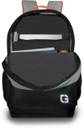 It features a padded laptop and tablet section to safely store and protect your electronic devices while on the go. Additionally, an easy-access pocket at the back provides convenient storage for important items such as wallets or tickets. The backpack offers ample storage space with a spacious main compartment, a multi-level organizer, and two side pockets for storing various essentials.
