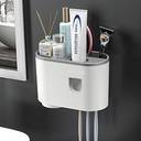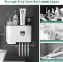 Upgrade your bathroom storage with this Wall Mounted Toothbrush Holder and Automatic Toothpaste Dispenser Kit. Designed to save space and keep your essentials organized, it comes with a magnetic cup, multi-functional storage rack, and punch-free installation. Made from high-quality, odorless ABS + PP plastic, it's durable, waterproof, and easy to clean — the perfect solution for modern bathrooms.