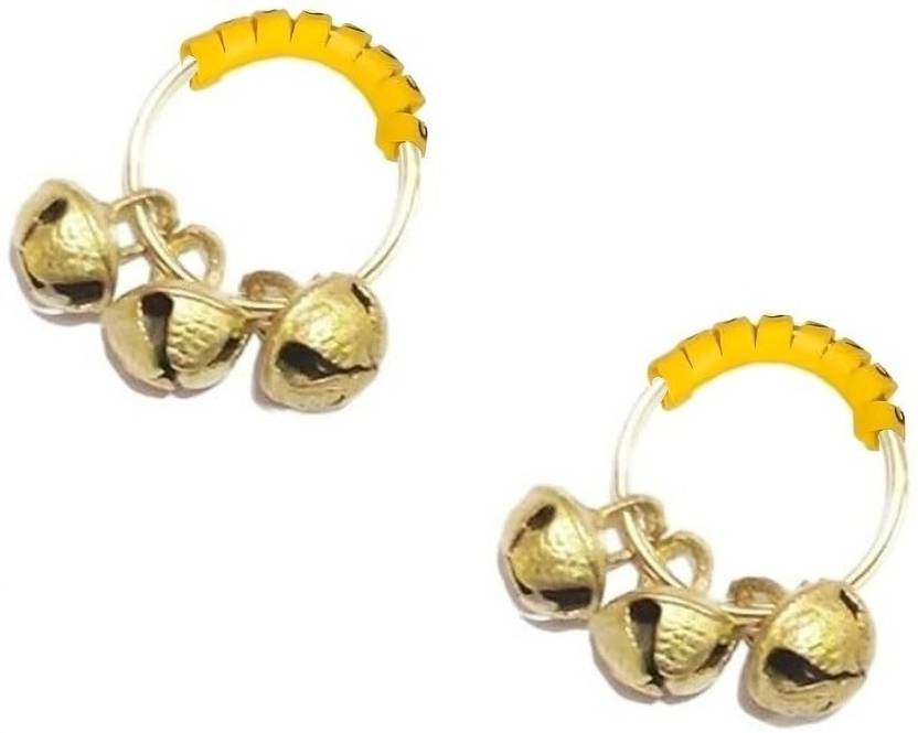 Authentic Ghungroo Kadi: This set of 1 includes genuine brass ghungroo kadi (finger bells) with yellow accents, perfect for Kirtan, Aarti, Bhajan, and Pooja rituals.