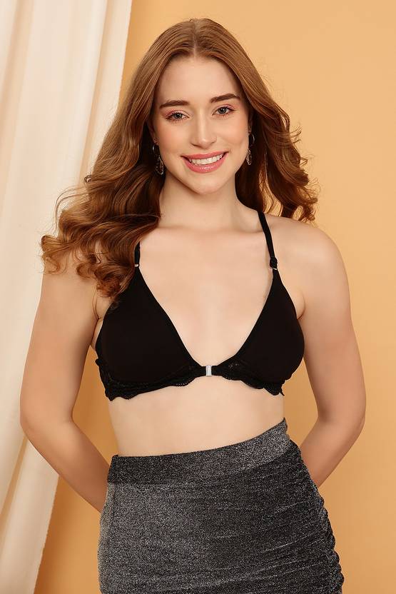 Non-Padded Bra Crafted With Comfortable Cotton Rich Fabric. Black Solid Bra. Non-Padded Double Layered Cups.Demi Cups For 3/4Th Coverage.Non-Wired For All Day Comfort.Plunge For Deep Necklines.Has Adjustable Straps.