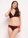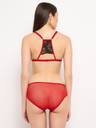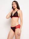 This bra & bikini set is crafted with premium lace and powernet fabric. It is non-padded non-wired bra. It is double layered to protect modesty. Plunge neckline to wear under deep neck tops dresses. Stylised racerback to flaunt under low back outfits. Single hook closure for styling options. Low waist powernet bikini with medium coverage and lace panel.