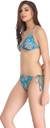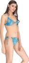 Floral printed bra and panty set in string style. Comes with non-padded non-wired demi cup halter neck bra. The briefs have been designed in bikini style in low-waist with medium coverage. Ideal for bridal as well as beach wear.