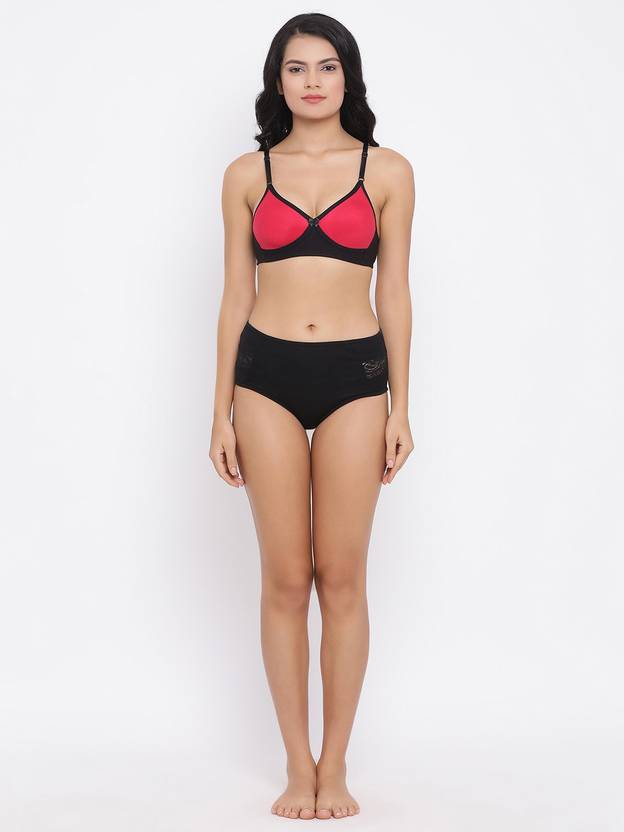 Bra & Panty Set Solid Black, Pink Lingerie Set