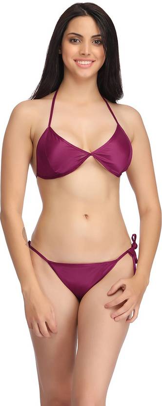 This itsy bitsy bikini set of bra and brief is so much fun that you never get tired of it. Made of smooth satin in deep maroon colour, it’s cute yet sexy. The strings of bra and brief are sure to fire his imagination.
